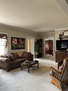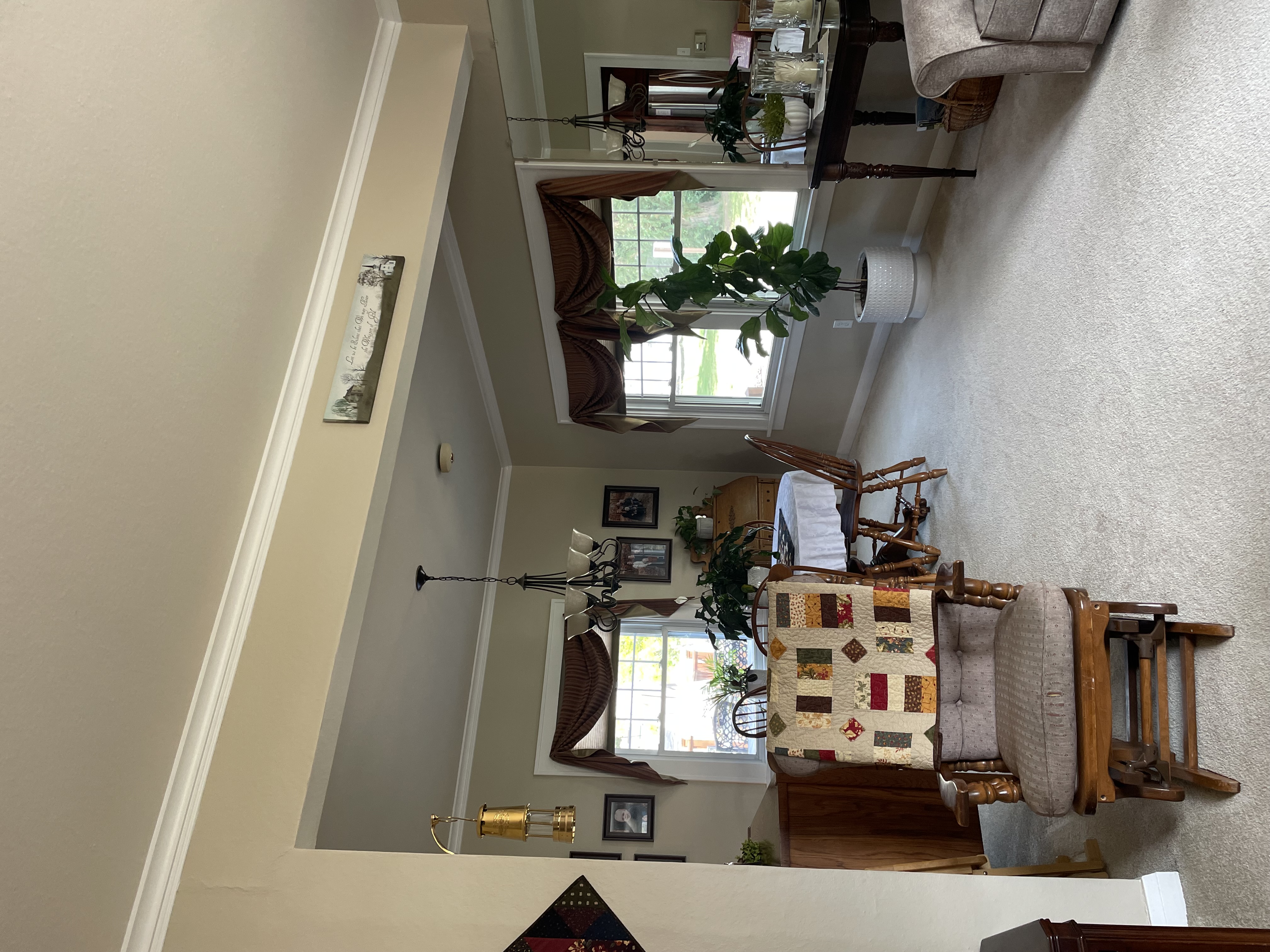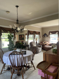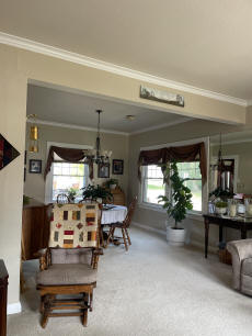 L-shaped living room to a dining