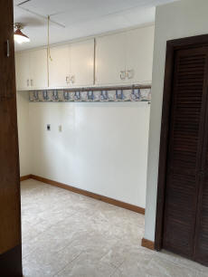 Laundry room has new flooring, sink