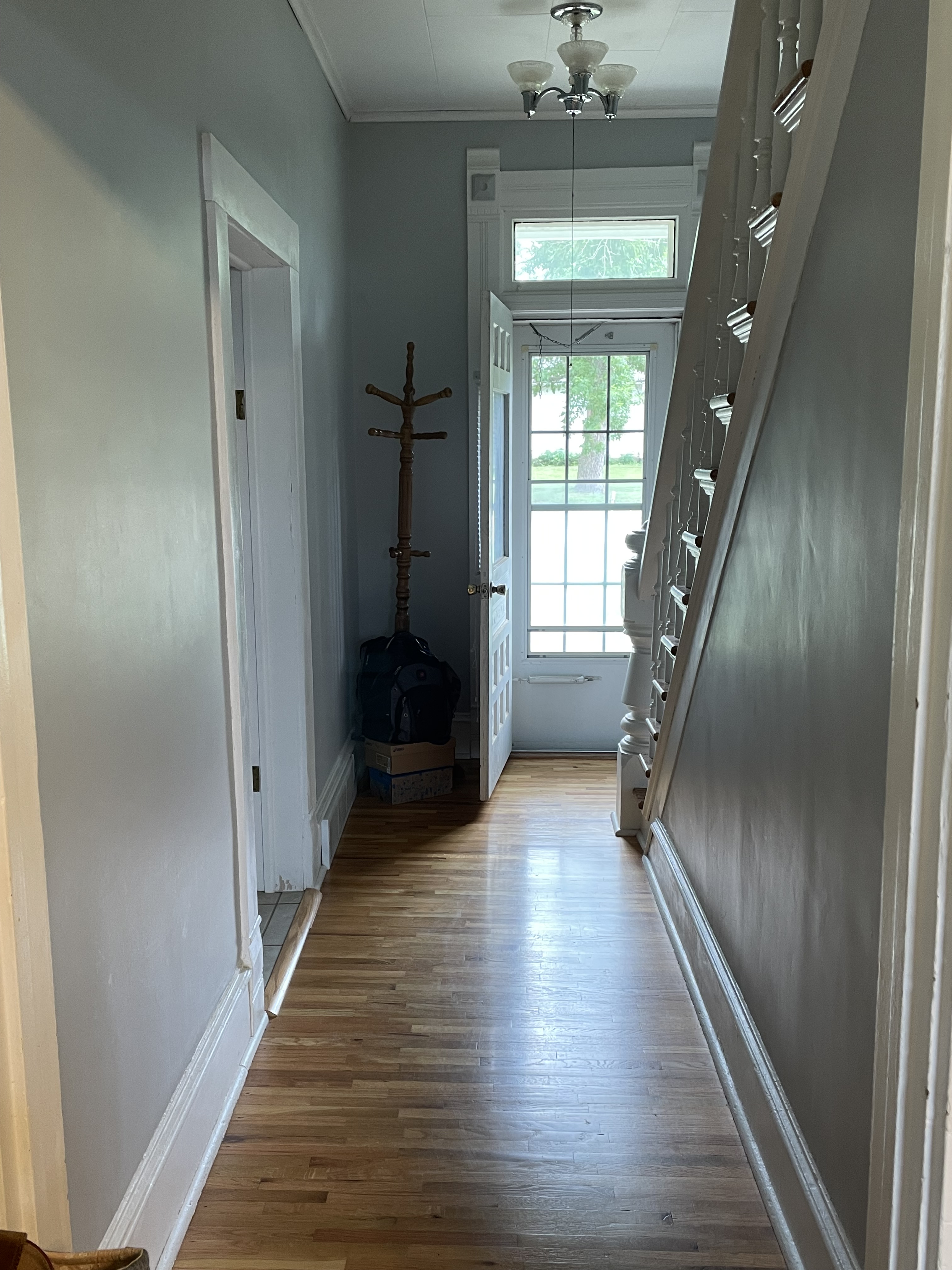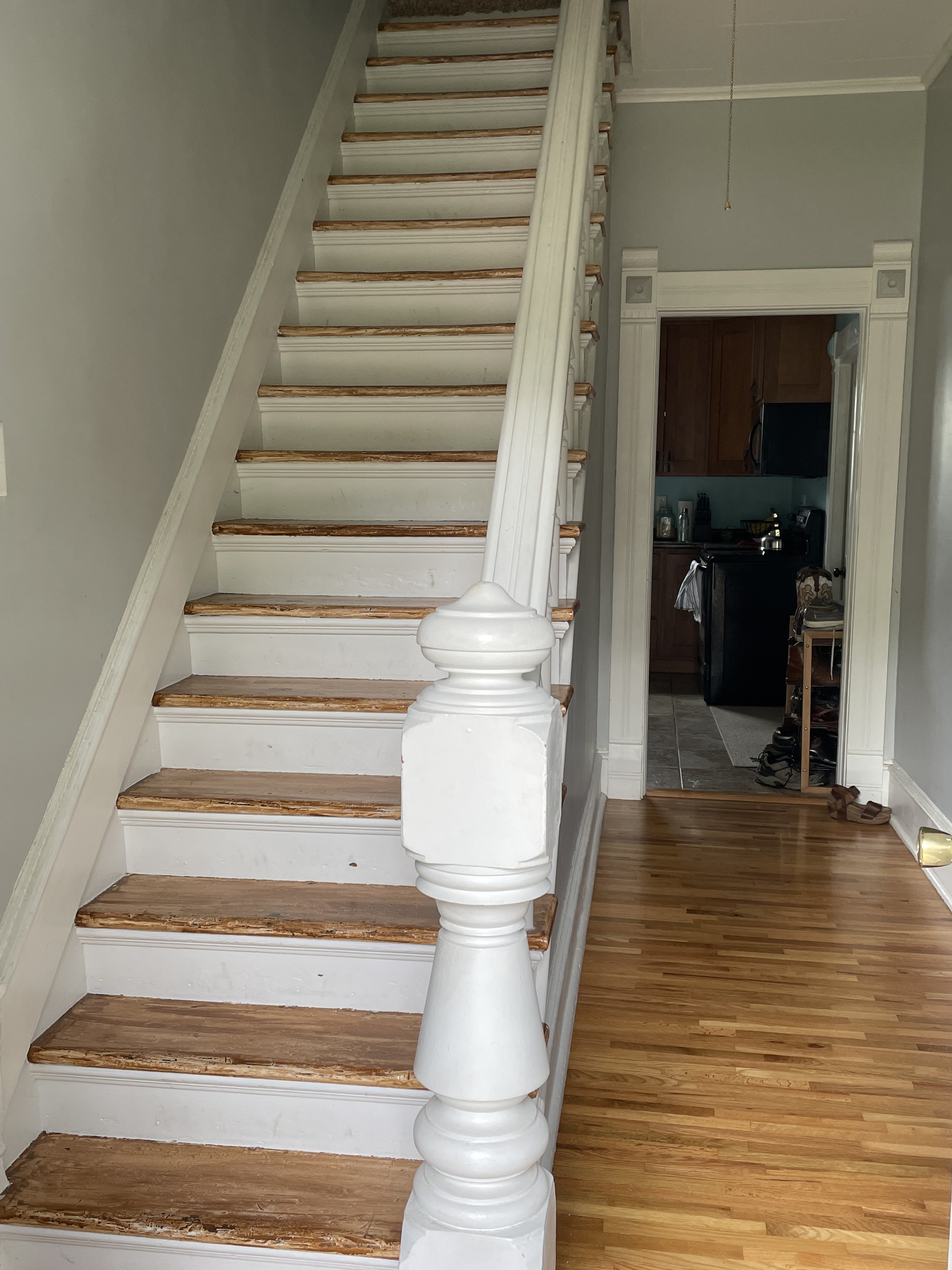 with an open stairway. The