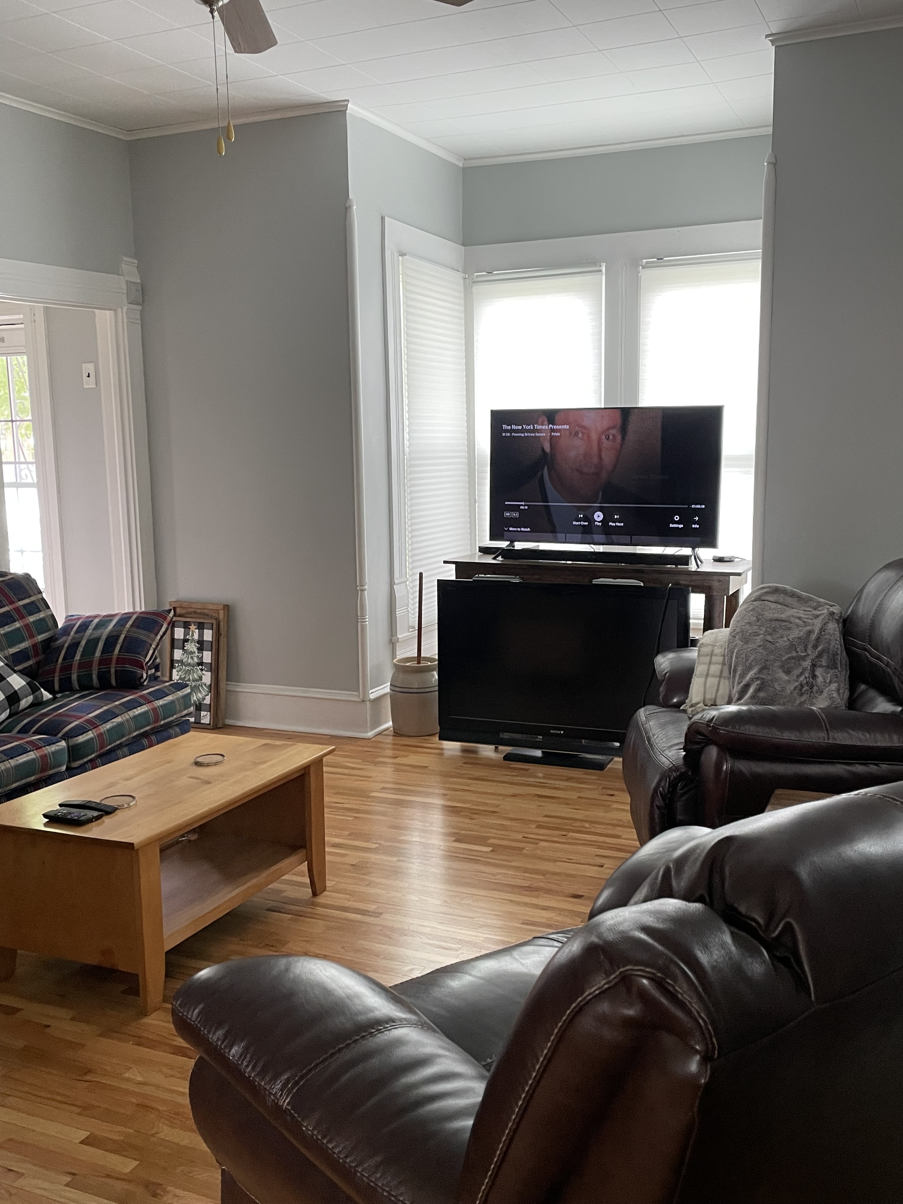 There is a nice size living room
