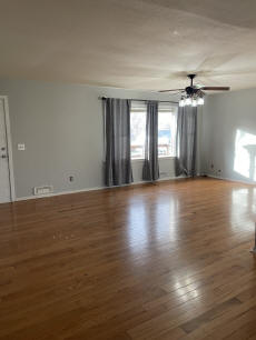 L-shaped living room/dining area.